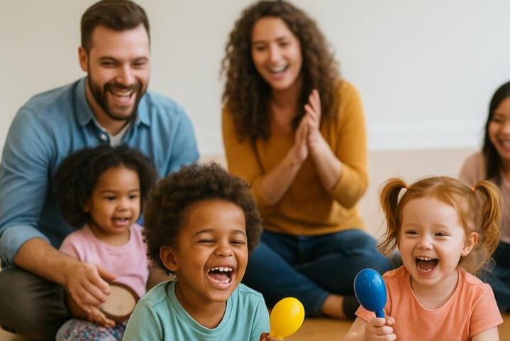 Bond through instruments, rhythm, scarves, and song in playful, developmentally rich sessions for ages 0–5 and their grown-ups.